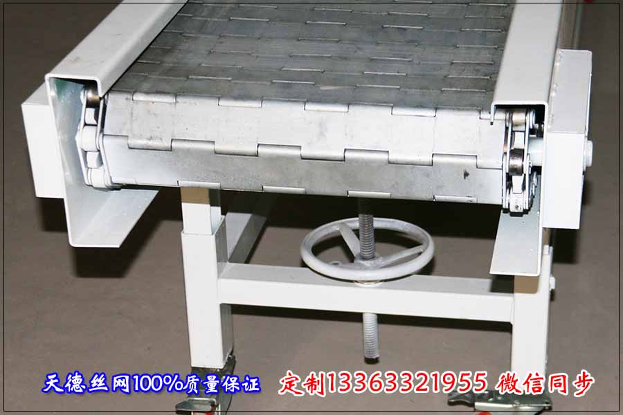 链板输送机生产基地在安平丝网之乡,河北天德丝网制品有限公司二十多年建厂以来,赢得了上万家客户的好评与信赖。 链板输送机利用固接牵引链上链板在水平或倾斜...