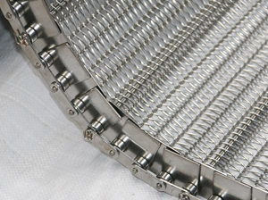 挡板链条不锈钢网带由左右交替的网条通过直串条联结而成,网带网孔较密,网孔间距均匀,能使网带行走平稳。